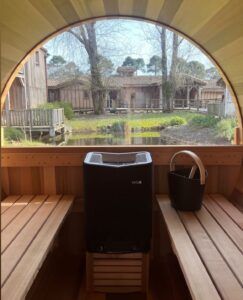 Rond ou rectangulaire, le sauna en bois trouve facilement sa place dans tous les environnements : jardin paysager, contemporaine ou espace bien-être d’un hébergement touristique. Son allure naturelle et chaleureuse en fait un véritable atout esthétique, parfaitement intégré à votre aménagement extérieur.